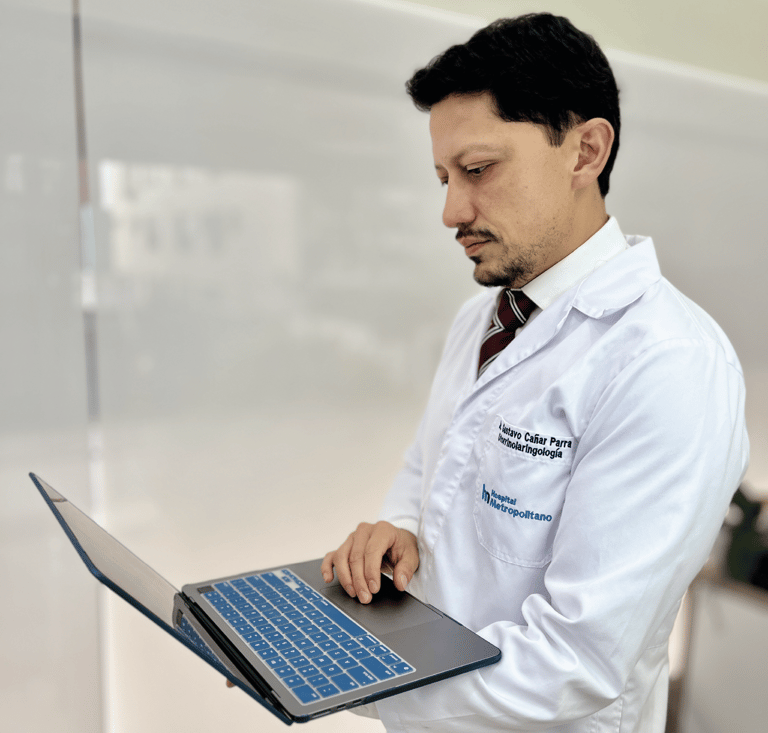 El Dr. Gustavo Cañar forma parte de importantes sociedades médicas nacionales e internacionales, lo que respalda su compromiso con la formación continua, la excelencia profesional y la aplicación de las últimas técnicas en otorrinolaringología, cirugía facial y medicina del sueño.