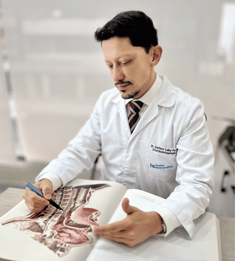 Con una sólida trayectoria en hospitales de alto nivel, el Dr. Cañar ha realizado con éxito cientos de procedimientos en nariz, senos paranasales y base de cráneo. Su enfoque quirúrgico busca no solo resolver el problema funcional, sino también mejorar la calidad de vida del paciente.